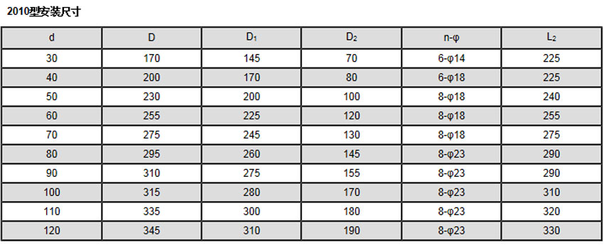 2010型機(jī)械密封使用壓力<4.0MPa,密封腔溫度<80℃,最大線速度<3m/s,適用于各種弱腐蝕性氣體。當(dāng)釜口溫度過(guò)高需冷卻底盤(pán)時(shí),高度約再增加100mm。