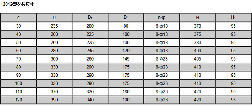 2012型機(jī)械密封使用壓力<6.4MPa,介質(zhì)溫度<200℃,最大線速度<3m/s,適用于各種弱腐蝕性氣體,當(dāng)釜口溫度低于100℃時(shí),可省去冷卻底盤(pán)。