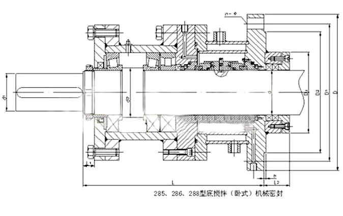 285, 286型機(jī)械密封,包括轉(zhuǎn)軸支撐系統(tǒng)及雙端面機(jī)械密封。 285型適用于1.33×10-5~0.6MPa ,286型適用于1.33×10-5~1.6MPa。密封腔溫度≤80℃,轉(zhuǎn)速≤500rpm,實(shí)際高度(L,L0等)隨攪拌軸伸出長度有些變動,請用戶設(shè)計時注意,并可根據(jù)用戶底法蘭具體尺寸供貨。